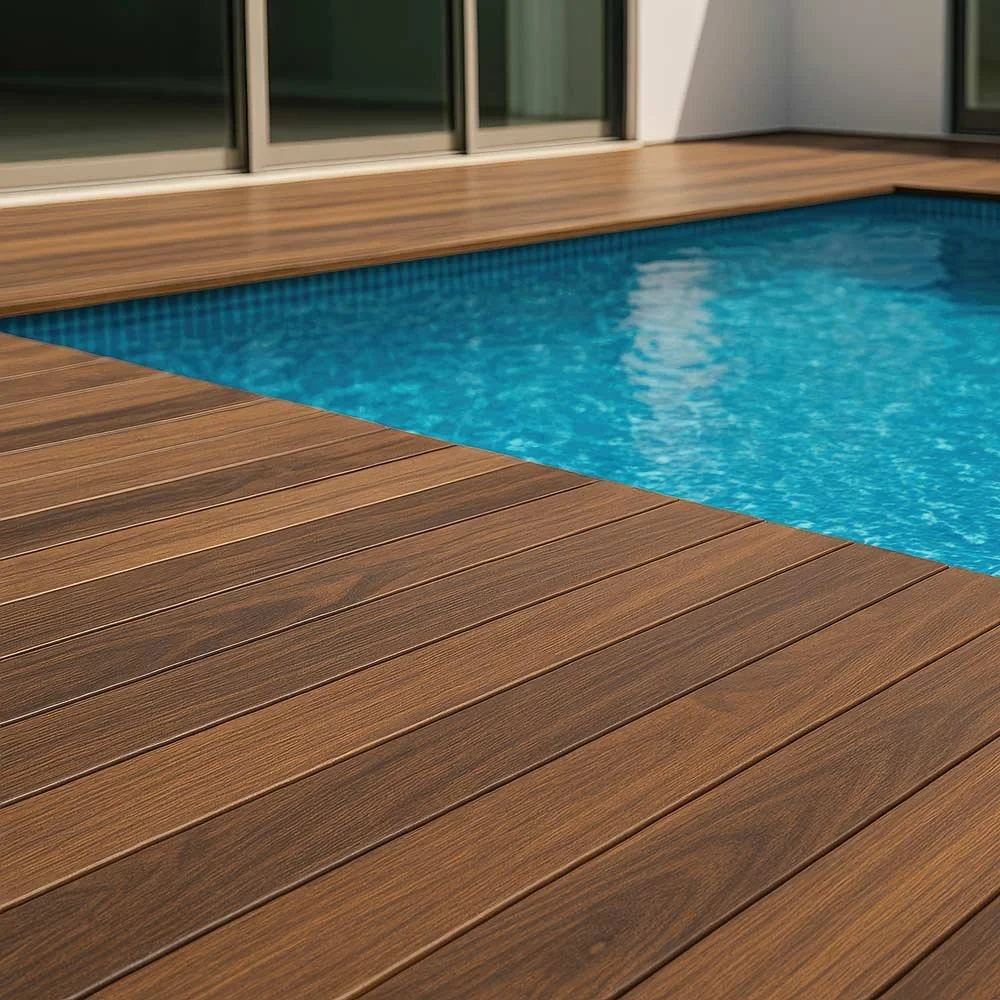 Deck et bardage haut de gamme conçues pour sublimer et structurer vos espaces de vie, avec l’esthétique du bois et les performances d’un matériau innovant.